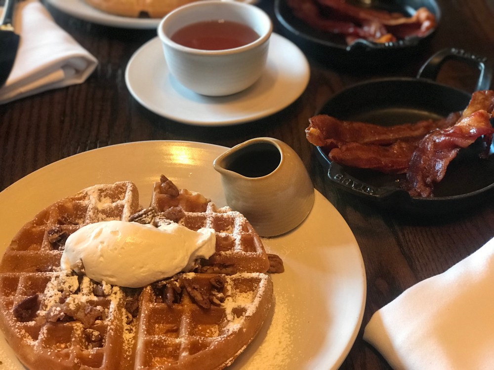 Oh! In case you were wondering what I did to celebrate. I went to fancy brunch. I devoured a Polenta Waffle topped with candied bacon and pecan crumbles and whiskey whipped cream with a side of smoked bacon. And lots and lots of water. Delicious!